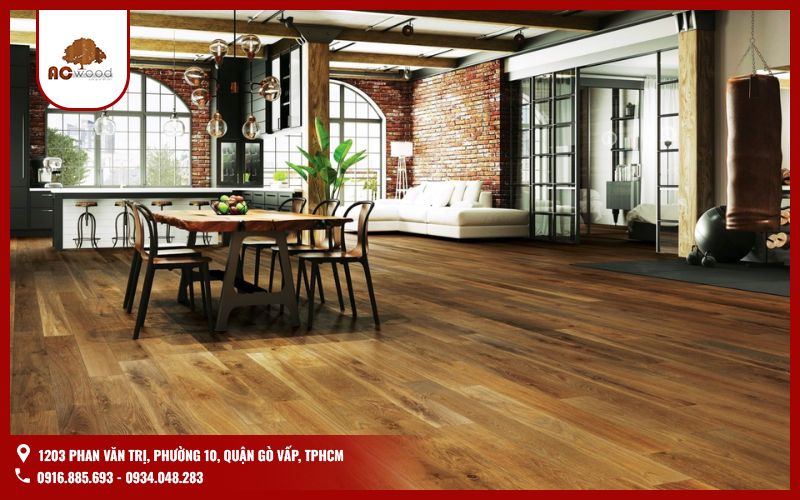 Sàn gỗ tự nhiên được đánh giá cao nhờ vẻ đẹp sang trọng và đẳng cấp. Các loại gỗ phổ biến gồm lim, giáng hương, óc chó… Sau khai thác, gỗ được xử lý bằng công nghệ hiện đại, giữ màu sắc và đường vân độc đáo. Tại Hà Nội, nhiều gia đình chọn sàn gỗ tự nhiên để nâng tầm phòng khách, biệt thự hoặc công trình cao cấp. Ưu điểm của loại sàn này là độ bền chắc, tuổi thọ lâu dài và càng dùng càng đẹp. Tuy nhiên, chi phí thi công thường cao hơn so với sàn gỗ công nghiệp.