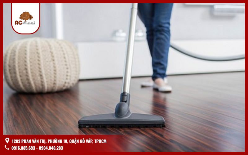 Để cho sàn gỗ có thể dễ dàng vệ sinh và lau dọn hơn bạn cần tiến hành sắp xếp lại khu vực sinh hoạt dùng chổi hoặc máy bụi để loại bỏ bụi bẩn, lông thú cưng. Từ đó hạn chế việc lau sàn khi có bụi sẽ khiến cho sàn gỗ dễ bị trầy xước.
