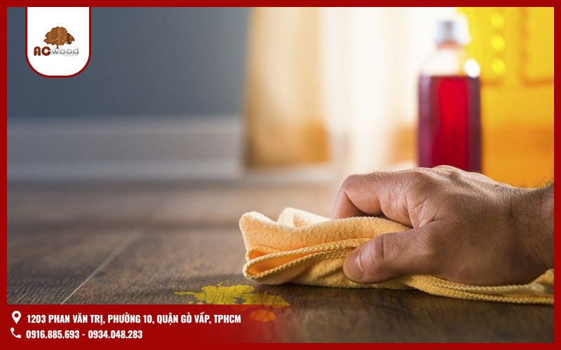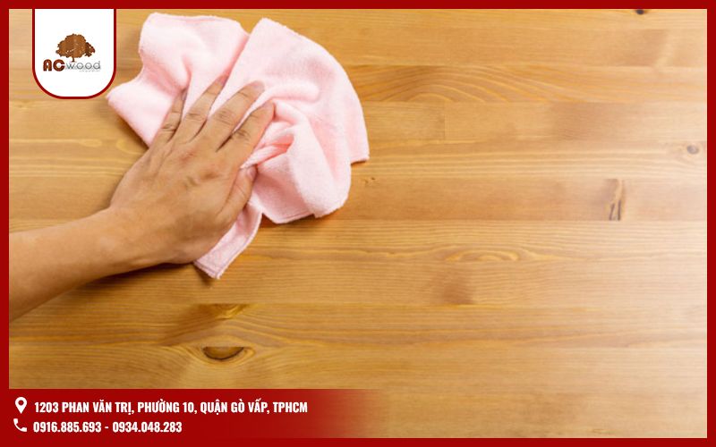 Ưu điểm của việc dùng giấm là có thể giúp đẩy lùi vết bẩn một cách hiệu quả mà vẫn đảm bảo an toàn và nguyên vẹn cho bề mặt gỗ. Chỉ cần nhỏ giấm lên khu vực cần làm sạch, đợi vài phút sau đó lau lại với nước.