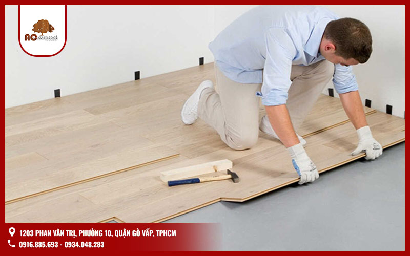 • Sử dụng mỏ gõ và kẹp sàn để đảm bảo các tấm gỗ được lắp chặt chẽ và không bị xê dịch.