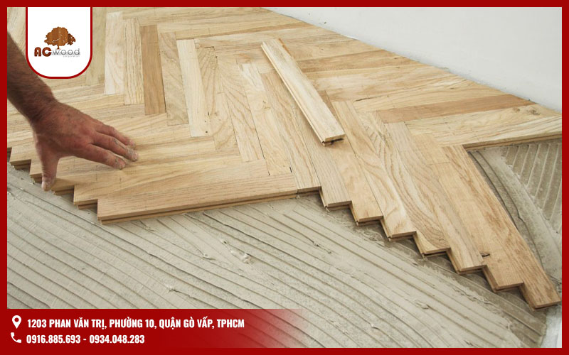 Thi công sàn gỗ tự nhiên sử dụng keo
